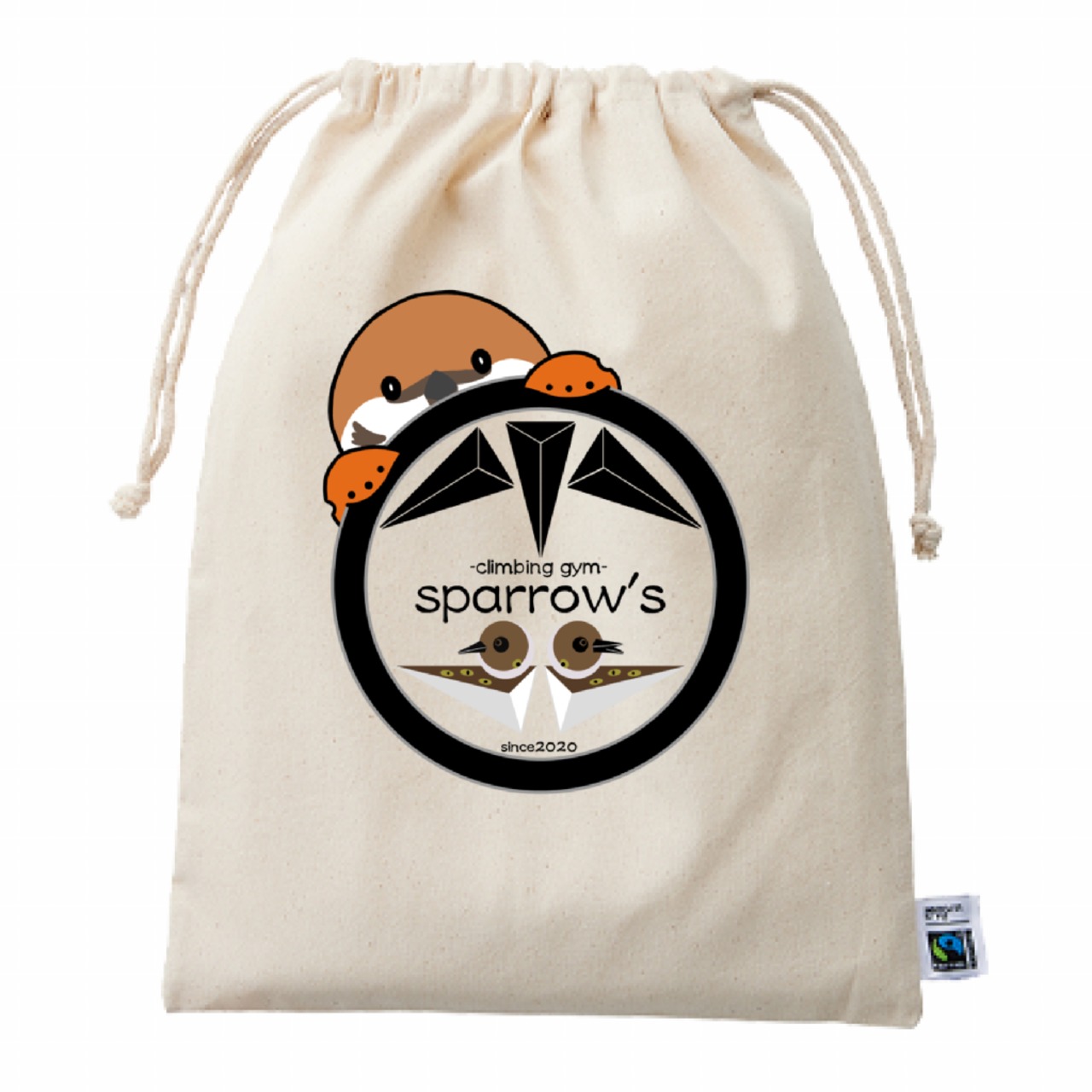 スパロウズクライミングジムのロゴと準マスコットキャラクター入り。